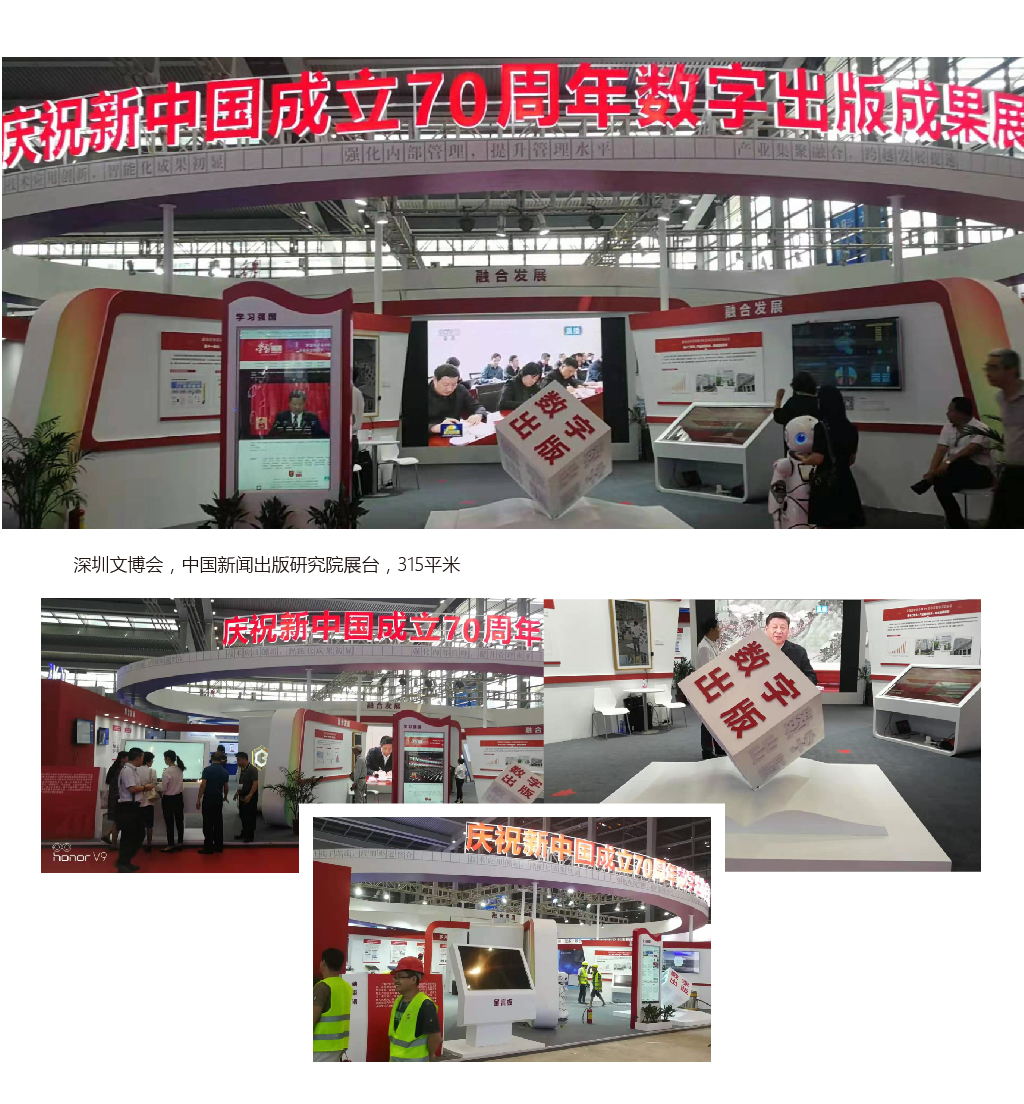 2019年5月16日至20日,第十五屆中國(深圳)國際文化產(chǎn)業(yè)博覽交易會(huì)將在深圳舉辦,盛典公司負(fù)責(zé)中國新聞出版研究院展臺的設(shè)計(jì)與搭建,總面積315平米,得到了甲方的認(rèn)可和肯定。